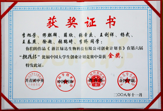 全国老员工创业计划大赛金奖