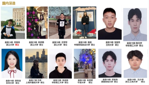 主要就业单位:中信证券、国信证券股、深圳德讯证券、渤海证券、海顺证券、东兴证券股、招商证券、杭州同花顺、中国人民银行、中国建设银行、中国工商银行、中国农业银行、中国银行、杭州银行、宁波银行、绍兴银行、中国邮政储蓄银行、地方农村商业银行、地方金融服务中心、地方银行业协会、中国平安人寿保险浙商财产保险等保险公司、深圳科思通信科技以及各类网络科技公司、各类企业管理咨询部门、各大会计师事务所、地方组织部、地方公安局交警大队、地方人民政府征兵办、金融市场分析与数据分析师自主创业等