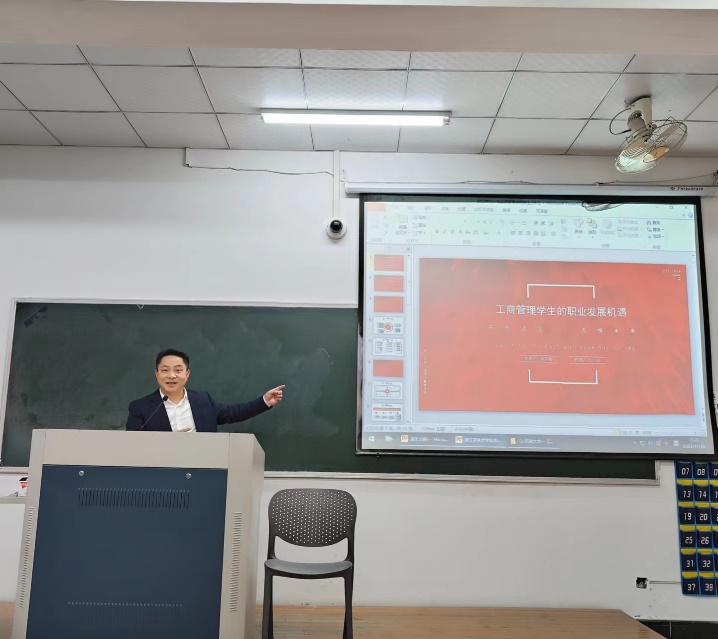 聘任仪式结束后,吴教授作了题为“工商管理员工的职业发展机遇”的报告。报告从工商管理未来职业发展、管理的重要性、自身学习工作经历等话题开始,以“分享感悟、一起学习、共同进步”为主题,分享了自己考研、工作、考编的经历,深入浅出的剖析了工商管理专业良好的发展前景。以宏观、微观相结合的视角,古代、现代相结合的案例,系统的分析了作为一个管理者应该具备的能力素养。还从社会责任与家国情怀的角度勉励各位学子躬身实践、踔厉奋发,学好专业基础知识,培养自己的独特竞争力。