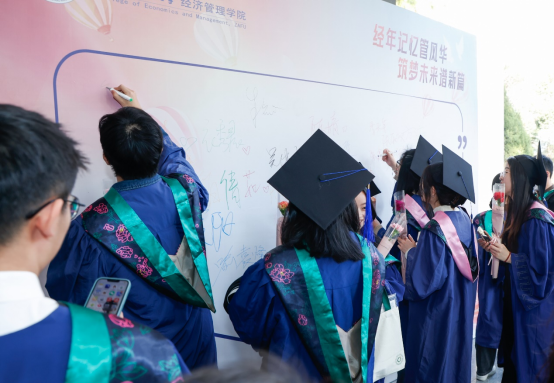 吴伟光为毕业生拨穗并授予学位证书。伴随着轻快的乐曲,身穿硕士学位服的毕业生依次走上主席台,向经理鞠躬致谢、合影留念。授位仪式神圣而庄严,拨穗正冠,也象征着学子们学业有所成,即将展翅高飞。