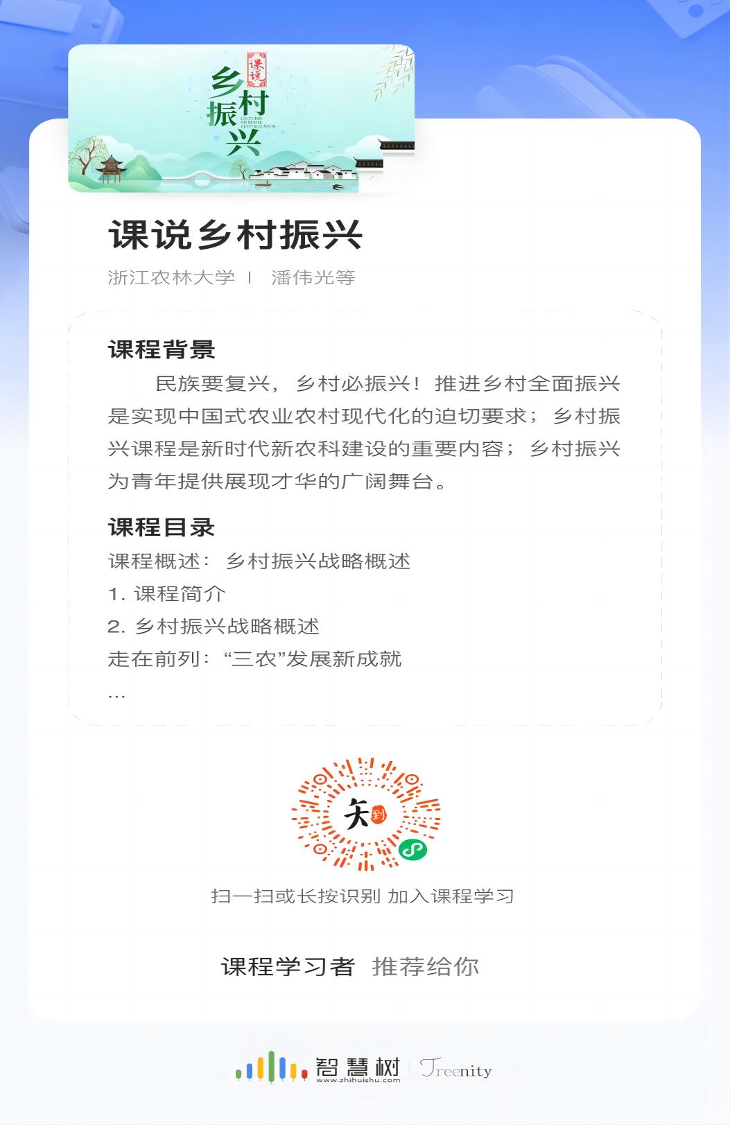民族要复兴,乡村必振兴!为助力乡村全面振兴,更好地把握了解我国乡村振兴理论和实践,尤其是了解部省共建乡村振兴示范省、中国式农业农村现代化先行省的浙江“三农”实践,进一步增强广大农科院校老员工“三农”情怀,树立以强农兴农为己任的理想,公司联合乡村振兴研究院汇聚了相关专家老师,特别制作了《课说乡村振兴》。