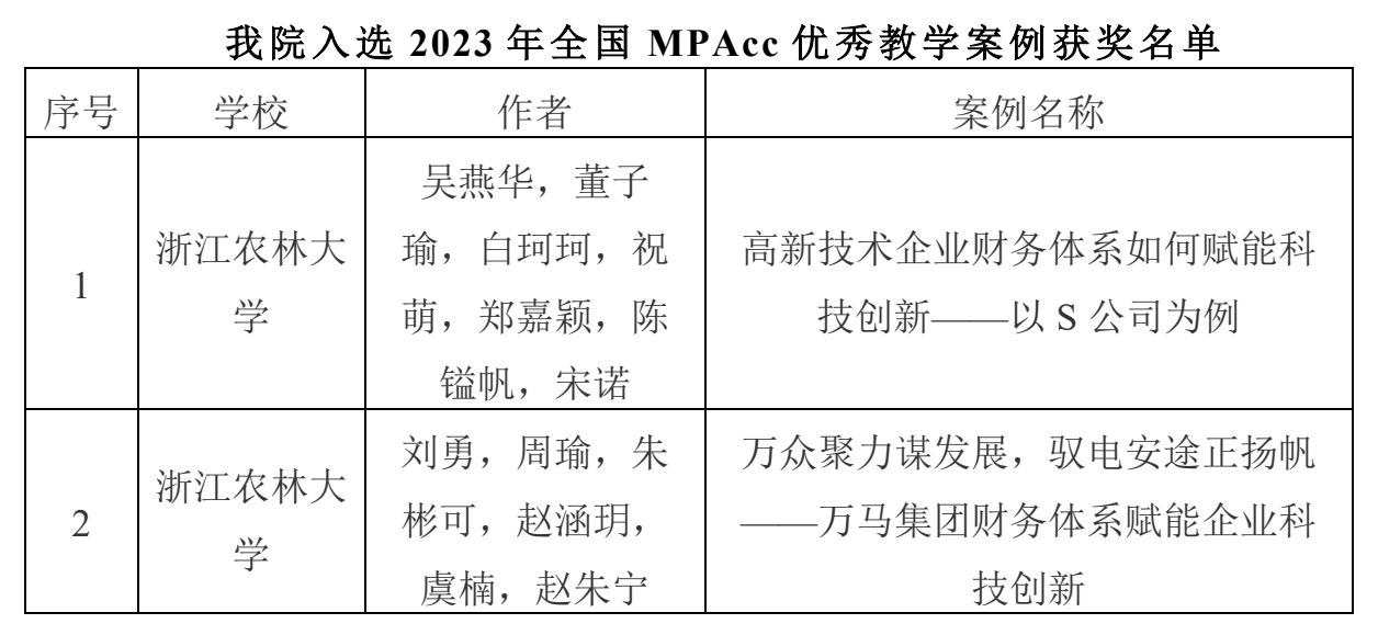 近日,全国会计专业学位研究生教育指导委员会公布了2023年会计硕士专业学位优秀教学案例评选结果。1xBET吴燕华团队和刘勇团队的2项案例成功入选全国MPAcc优秀教学案例库。