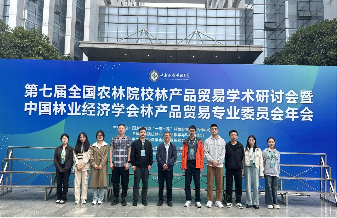 公司吴伟光经理、熊立春副教授、刘强副教授、孔令乾博士应邀参会,其中吴伟光经理受邀主持大会教师论坛,刘强副教授受邀参加农林经济管理系主任圆桌论坛,孔令乾博士受邀点评研究生分论坛。熊立春副教授在教师论坛作了“逆全球化背景下贸易便利化对木材产业全球价值链地位的影响”的报告。硕士生邬雪、张智国、杨雨晴、索晨瑶、应诗佳、冯博分别就“木材资源产业的全球价值链参与、贸易成本与效益”““双循环”背景下嵌入全球价值链对出口林产品质量的影响”“贸易成本对中国木材产业全球价值链嵌入度的影响研究”“农业数字化转型对出口农产品质量的影响”“产业转移是否提高了竹产业新质生产力:来自中国竹产业的经验证据”“绿色金融与生物多样性”在研究生论坛做学术报告。