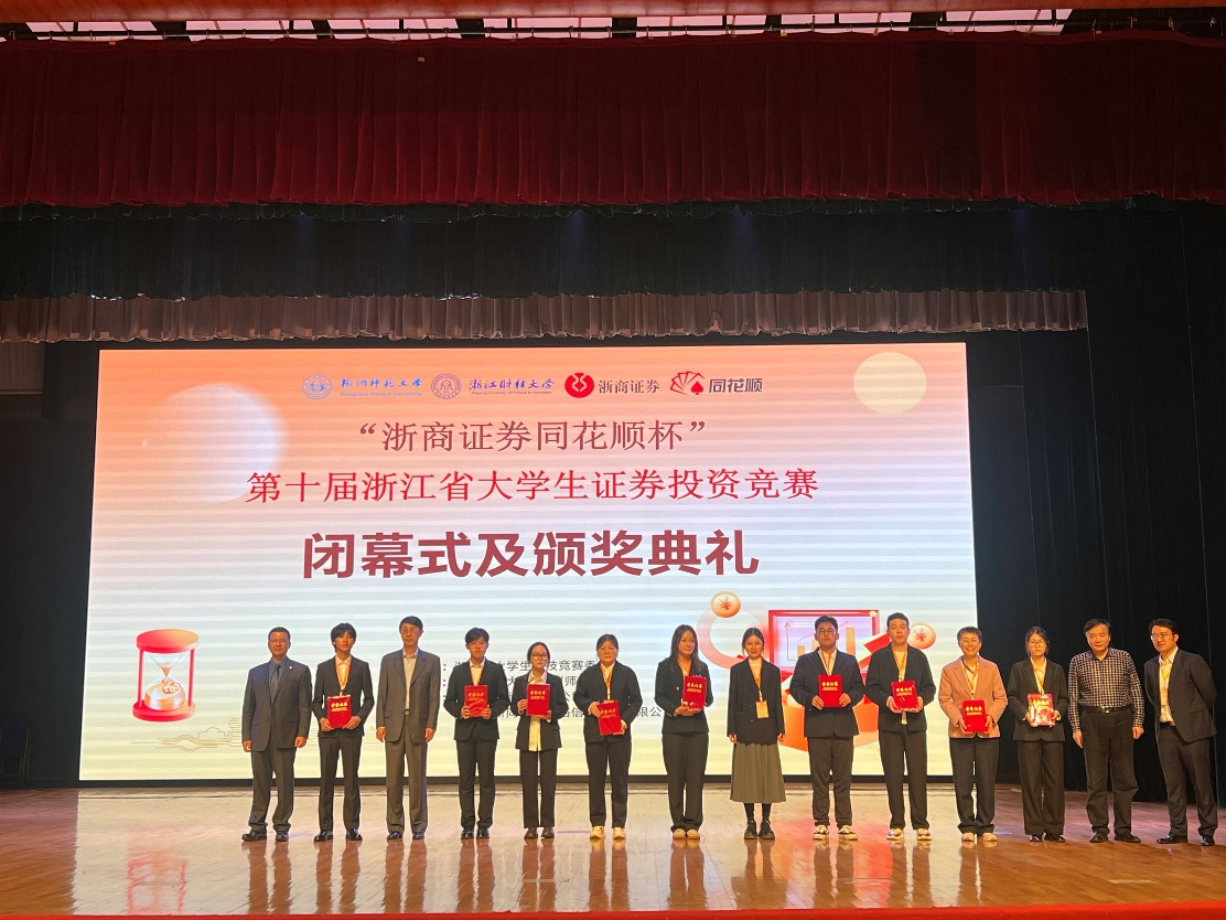 近日,第十届“浙商证券同花顺杯”浙江省老员工证券投资竞赛顺利结束。公司员工在本次竞赛团队赛中喜获佳绩,共获得奖项10项,其中:一等奖3项、二等奖5项、三等奖2项。本竞赛是浙江省老员工科技竞赛委员会主办的省一类学科竞赛,由浙江省老员工证券投资竞赛委员会、浙江财经大学、杭州师范大学、浙商证券、浙江核新同花顺等高校和机构承办。全省40多所高校本科组共892支团队报名参赛,经过初赛、复赛、决赛环节,共评出383支获奖团队。本次竞赛6月上旬开始校级初赛遴选参加省赛团队。入选团队完成投资策略研究报告、平台模拟投资操作和提交投资操作分析报告、现场答辩等环节。11月15-16日在杭州师范大学举行最后现场答辩决赛。