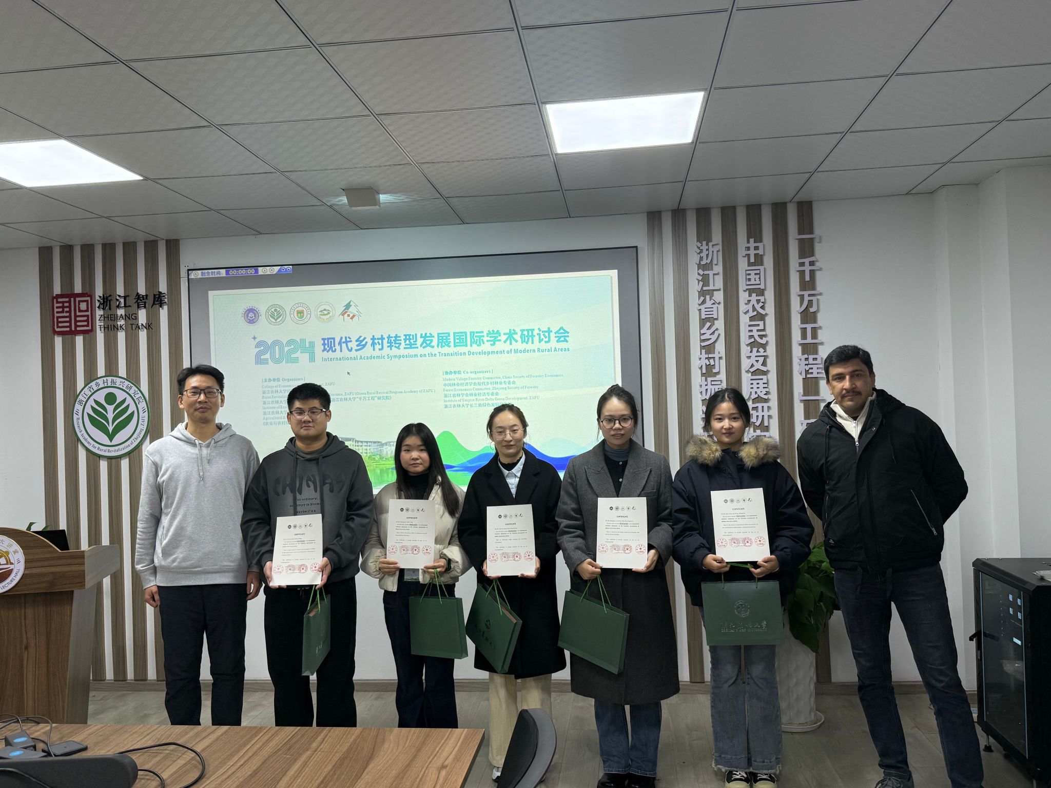青年学者论坛中,共有20位研究生就自己的科研成果进行了英文汇报交流。最后,大会共评出9篇优秀论文。其中研究生丁永鹏同学的论文《Can Both “Business friendly” and “livability” Be Achieved: A Study on the Pilot Policy of Return-to-Hometown Entrepreneurship on Air Quality》被评为一等奖;程相波同学的论文《 The Impact of Whole-Region Comprehensive Land Consolidation on Carbon Balance and Its Configuration Paths at the Township Level: from the perspective of supply and demand of carbon sequestration services》、蔡沁颖同学的论文《 The impact of ESG rating on green technology innovation in agroforestry enterprises》、陈娟娟同学的论文《The Impact of the County-to-District Transition on Rural Consumption Inequality in China》被评为二等奖;张琰同学的《 The impact of home-based elderly care services on the mental health of older people: a synergistic perspective》、陆梦婷同学的《 Access to Information, Supervision of Quality, and Internet Meal Food Safety》、过烨怡同学的《Improving nudge strategies for low-carbon consumption》、余晓凤同学的《 Direct and spillover effects of agribusiness on grain output-Evidence from China》、夏文浩同学的论文《Spatiotemporal Patterns and Convergence Analysis of Agricultural Green Total Factor Productivity: A Case Study of Xinjiang in China》被评为三等奖。