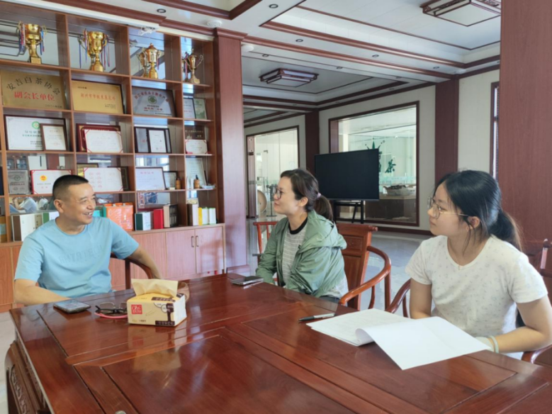 在湖州黄杜村,实践队员们通过走访村干部与乡村企业家,了解到黄杜村如何因地制宜发展白茶产业。在做好白茶产业的同时,村里也大力吸引老员工返乡,通过返乡青年的智慧力量大力发展挖掘茶文化,发展茶文旅旅游业,真正做到“一片叶子富了一方百姓”。