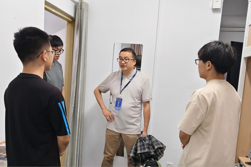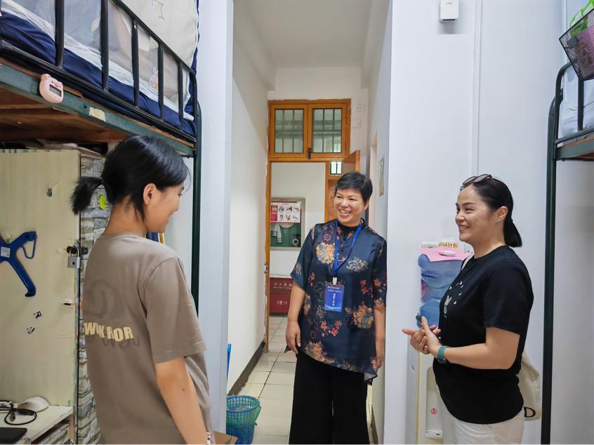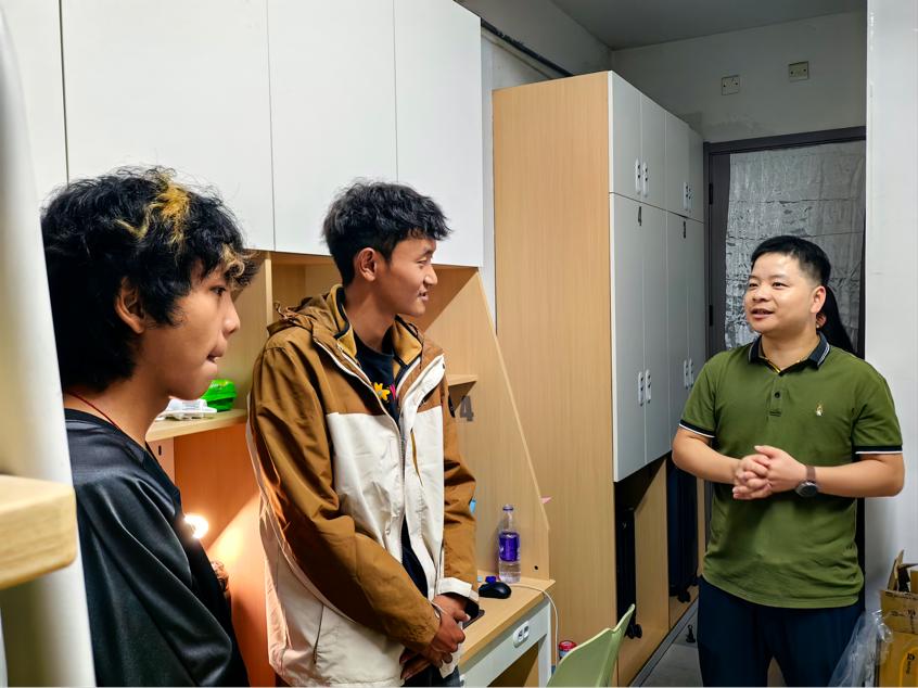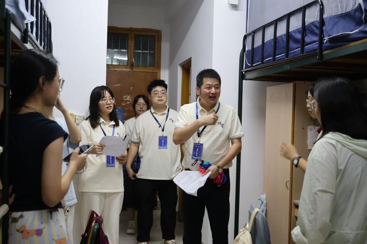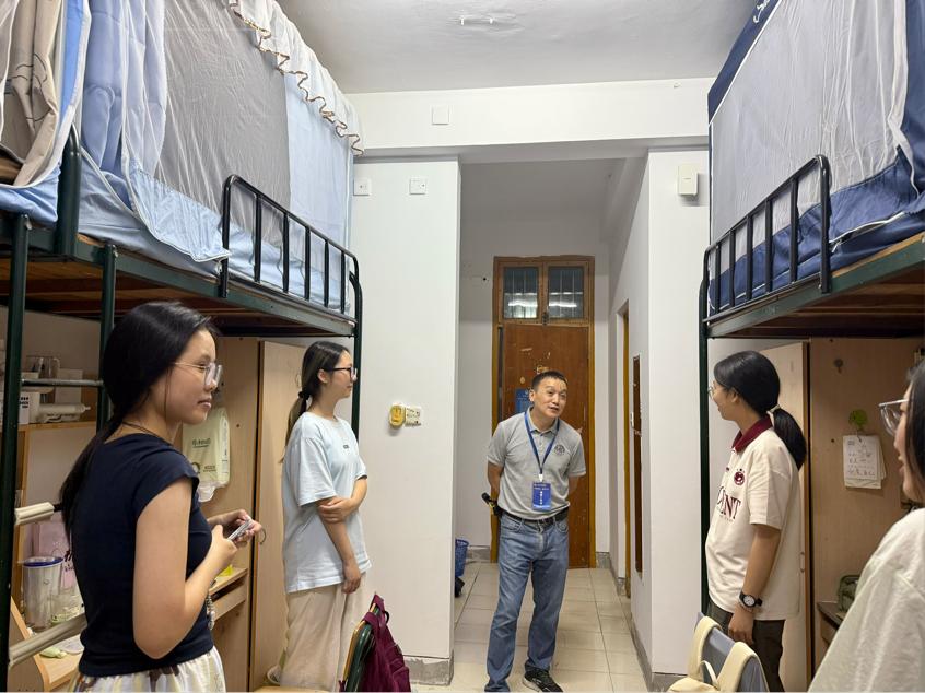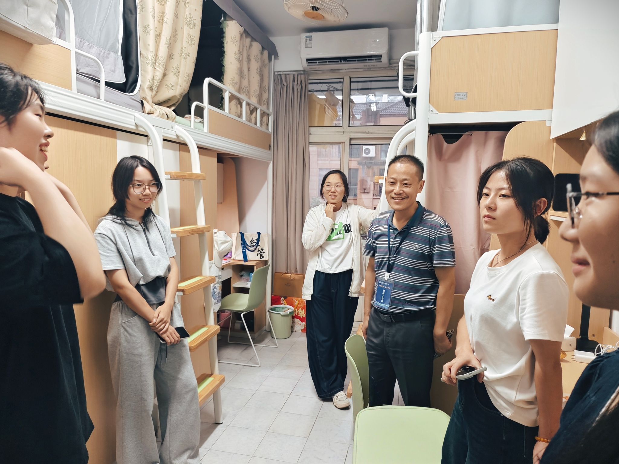 公司领导班子到新生宿舍走访慰问,向新生表示祝贺,并希望同学们尽快调整好状态,投入到新一阶段的学习中去。