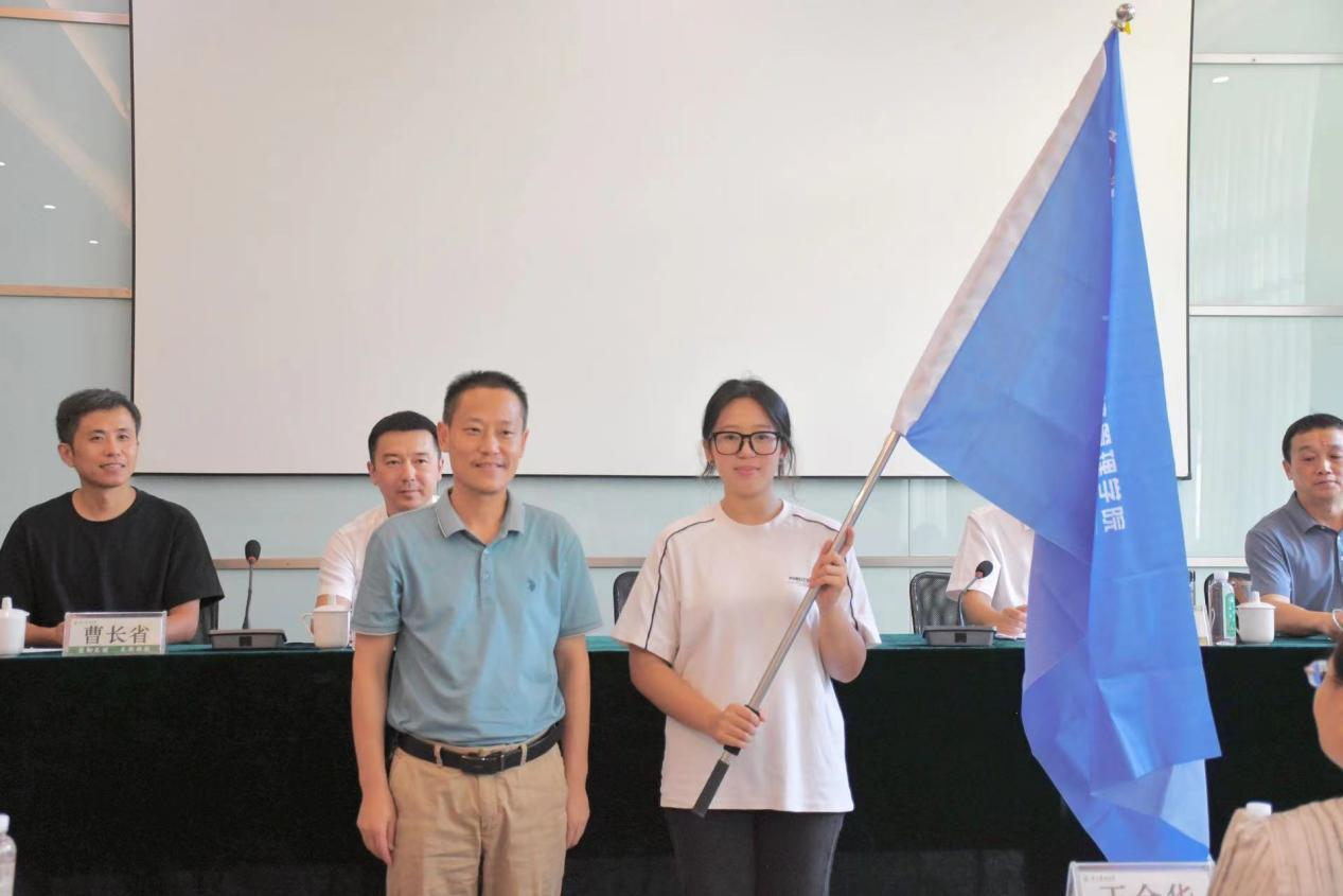启航班第一期班长工商管理专业 232 班朱业成同学代表全体学员作表态发言。她承诺,全体学员将珍惜公司提供的宝贵研学机会,认真对待,全力以赴,积极参与企业模拟运营、团队协作、一线调研、素质拓展等实践环节,切实提升专业本领,以“领军型管理人才”为目标,力争两年后全体学员呈现出视野开阔、能力卓越、素质突出的全新面貌。发言结束后,陈劲松书记为启航班授予班旗,象征第一期启航班正式开启成长征程。