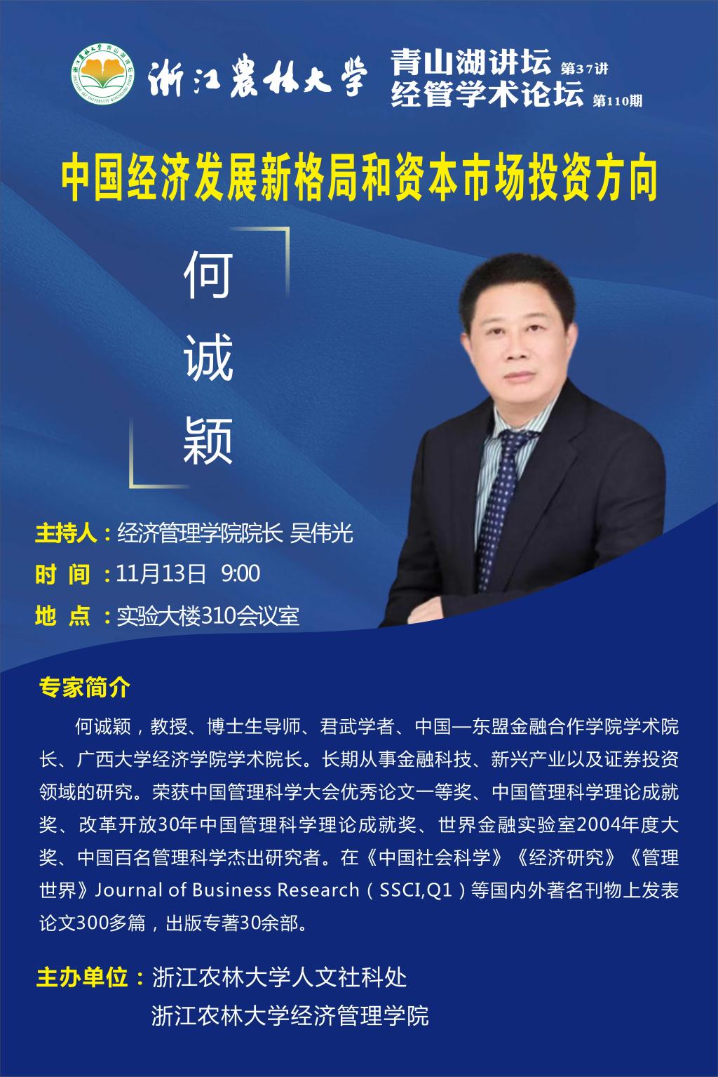 经管学术论坛第110期|中国经济发展新格局和资本市场投资方向