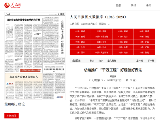 近日,由公司顾益康教授撰写的理论文章“总结推广‘千万工程’好经验好做法”在《人民日报》发表。