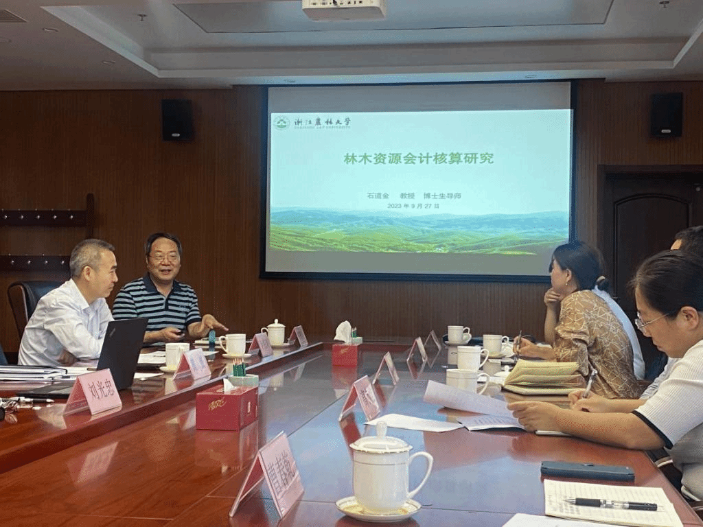 2023年9月27日上午,自然资源资产会计核算研究汇报会在财政部甲一号1516会议室召开,会议主旨是为了持续深化政府会计改革,推进自然资源资产政府会计核算研究工作。财政部会计司、财政部自然资源和生态环境司、中国会计学会、自然资源部财务与资金运用司、自然资源部所有者权益司、国家林草局规划财务司等部门相关领导和矿产资源会计研究团队、林木资源会计研究团队成员代表参加了汇报会。财政部会计司一级巡视员、中国会计学会秘书长刘光忠介绍了自然资源资产会计核算项目相关情况并作重要讲话,矿产资源会计研究团队、林木资源会计研究团队作了研究思路和研究进展报告,与会代表围绕自然资源资产会计核算问题展开了广泛而深入讨论。公司石道金教授代表林木资源会计研究团队作了研究思路和进展汇报。汇报会由财政部会计司制度一处黄赟处长主持。