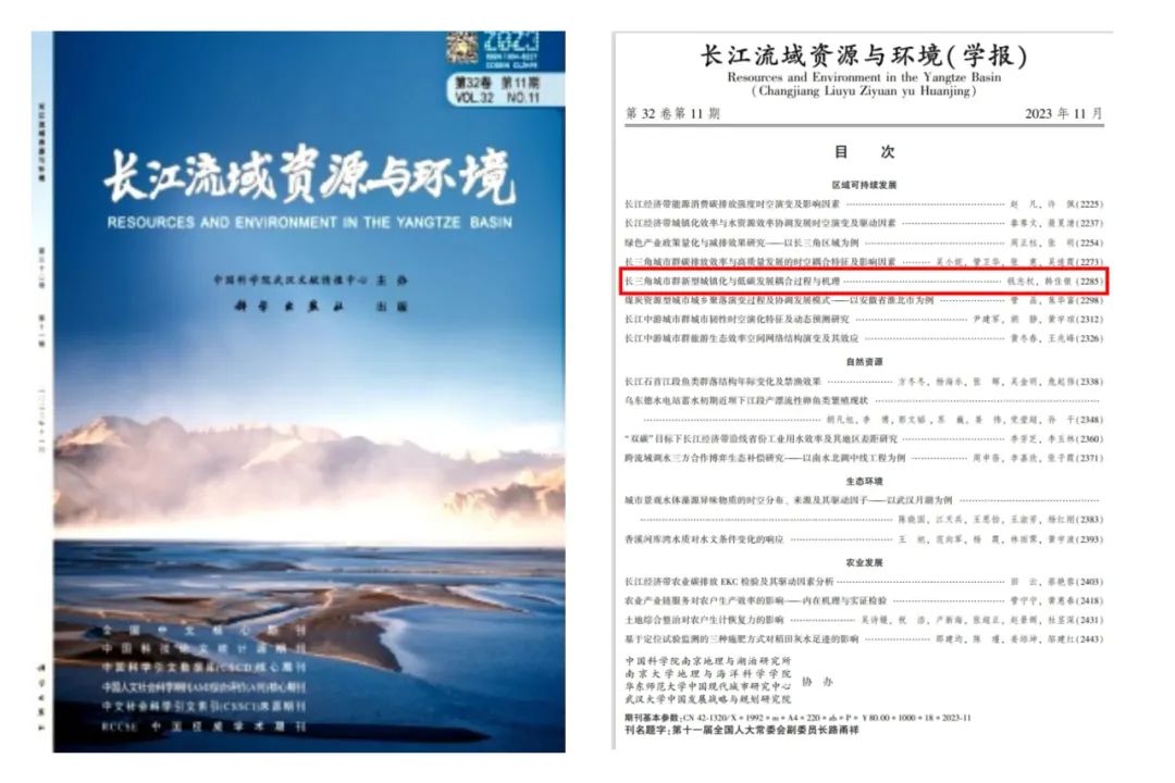 近日,由钱志权副教授与1xBET硕士研究生韩佳银共同撰写的论文《长三角城市群新型城镇化与低碳发展耦合过程与机理》在CSSCI来源期刊《长江流域资源与环境》第23卷第11期上发表。该论文是国家自然科学基金面上项(42271295)、教育部哲学社会科学研究重大专项项目(2022JZDZ009)、浙江省软科学重点项目(2022C25014)、浙江省属高校基本科研业务费专项资金项目(W20220052)等项目的阶段性研究成果。