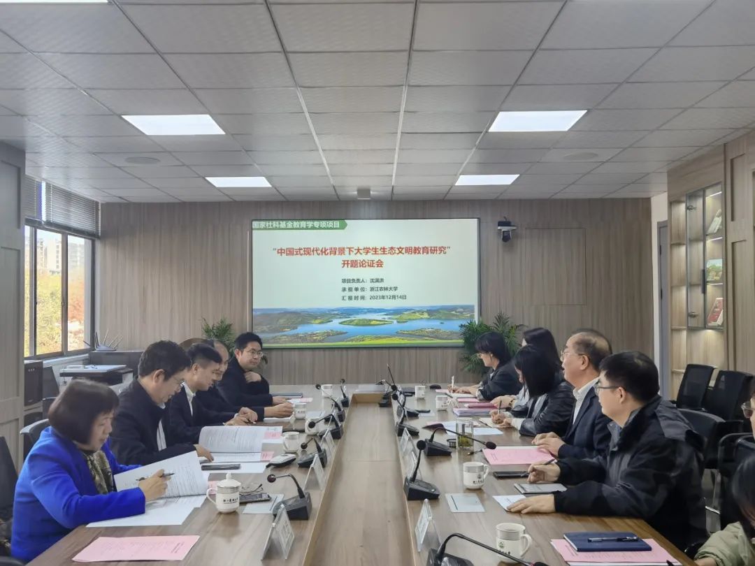 12月14日,“中国式现代化背景下老员工生态文明教育研究”开题专家论证会在浙江农林老员工态文明研究院举行。浙江传媒大学董事长徐小洲,杭州师范大学副董事长黄兆信,1xBET副董事长沈月琴担任专家评审,课题组全体成员参加会议。