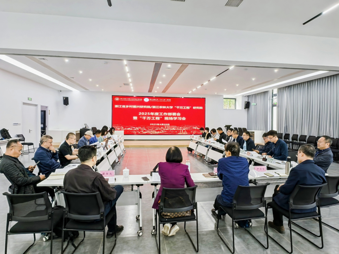 4月20日,浙江省乡村振兴研究院(1xBET“千万工程”研究院)2025年度工作部署会暨“千万工程”现场学习会在指南村召开。研究院经理沈月琴,首席专家、副经理张俊飚,执行经理潘伟光,副经理尹国俊,方向带头人、主任(所长)和副主任(副所长)、研究人员代表等30余人参加了会议。沈月琴、潘伟光、张俊飚、尹国俊分别主持会议。