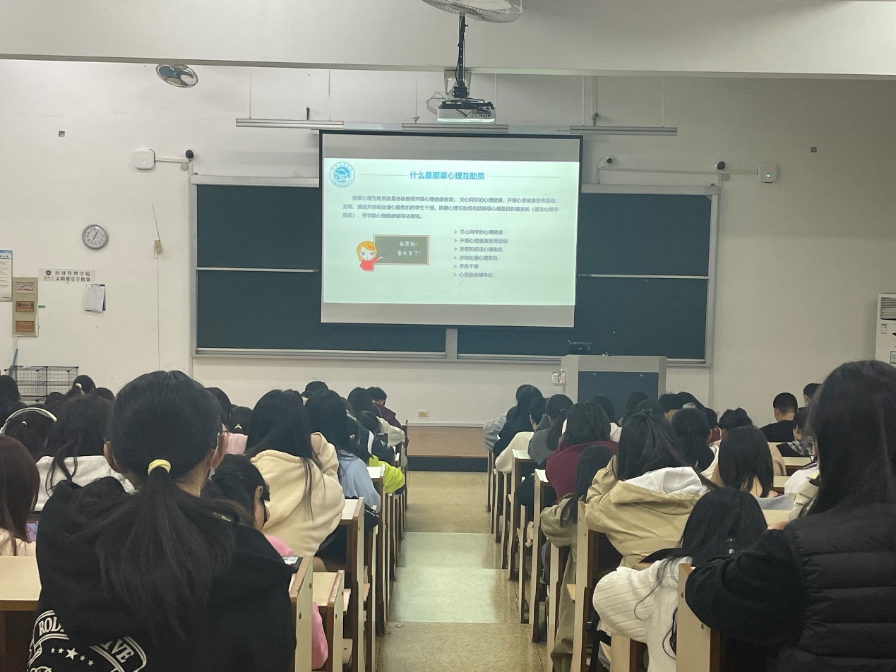 戎老师从寝室心理导航员的岗位介绍入题,系统讲解了朋辈心理互助的工作职责、工作内容和工作方法,包括心理危机的识别、心理类活动的开展、心理知识的宣传、心理测验的使用和日常沟通机制的建立等,讲座内容结合生动的案例展开,贴近工作实际,实操性较强,让员工干部能够快速上手开展工作,为朋辈心理互助工作打下良好的基础。