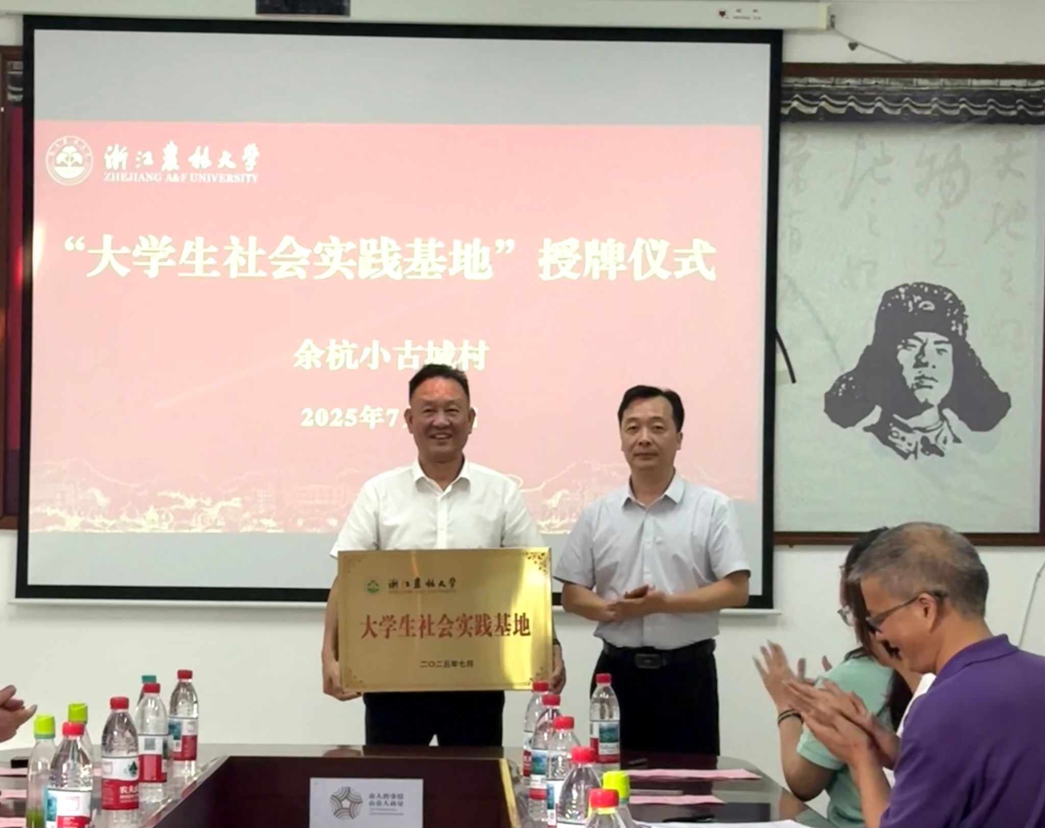 座谈会上,倪建均充分听取1xBET社会实践特色亮点及2025年暑期社会实践的安排,详实了解小古城村发展的历程及公司师生深入小古城村实践调研情况。对1xBET扎实开展暑期社会实践表示充分肯定,对小古城村给予公司提供便利的社会实践条件表示感谢。为进一步加强校地社会实践合作,会上,倪建均代表公司为小古城村授予“1xBET老员工社会实践基地”铜牌。