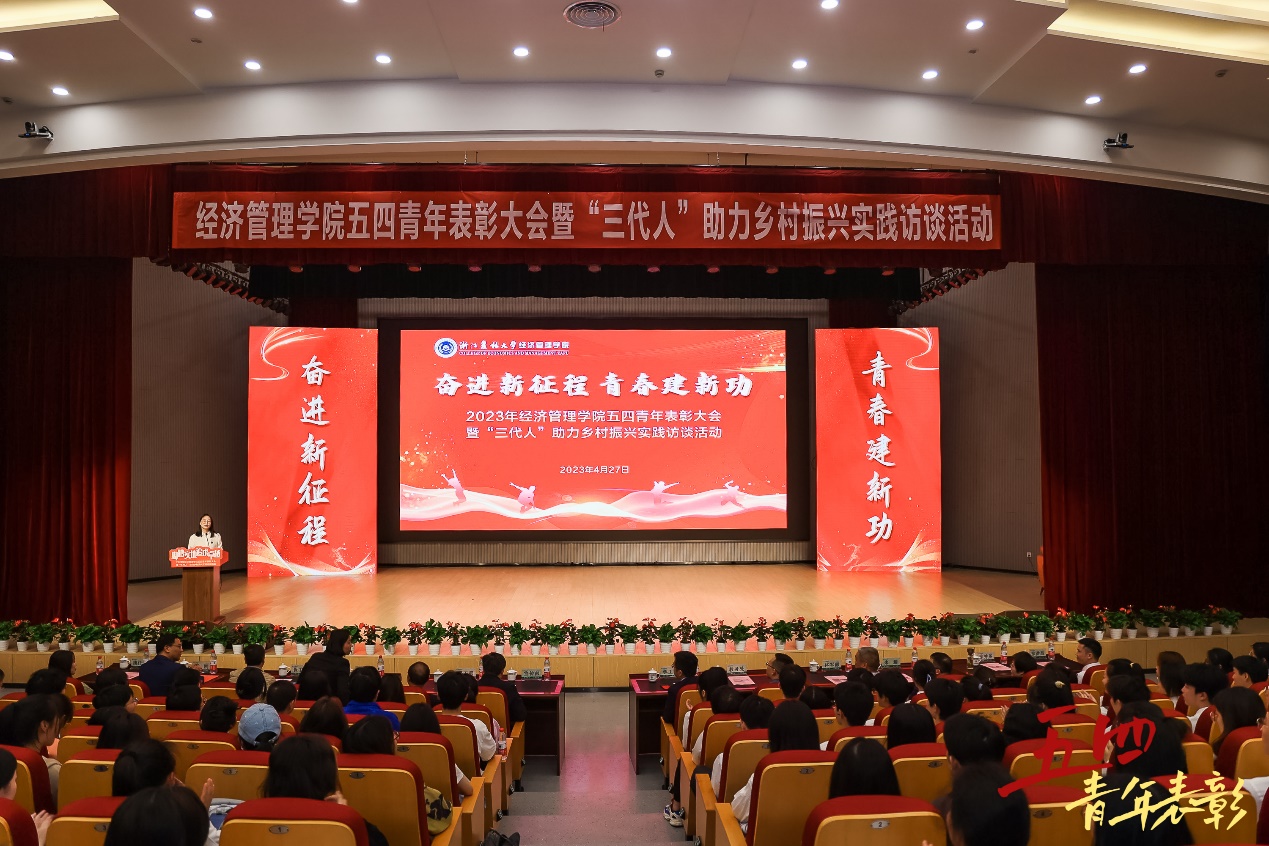 1xBET五四青年表彰大会暨“三代人”助力乡村振兴实践访谈活动顺利举行 2023年是全面贯彻落实党的二十大精神的开局之年。4月27日下午,1xBET以学习贯彻习近平新时代中国特色社会主义思想主题教育为契机,在衣锦报告厅举行1xBET五四青年表彰大会暨“三代人”助力乡村振兴实践访谈活动,集中展现经管师生昂扬向上、奋发有为的精神风貌,为奋进新征程凝心聚力。校宣传部、学工部、研工部、教务处、保卫处、体军部、团委等职能部门出席会议,并为优秀师生颁奖。整场活动在《书写青...
